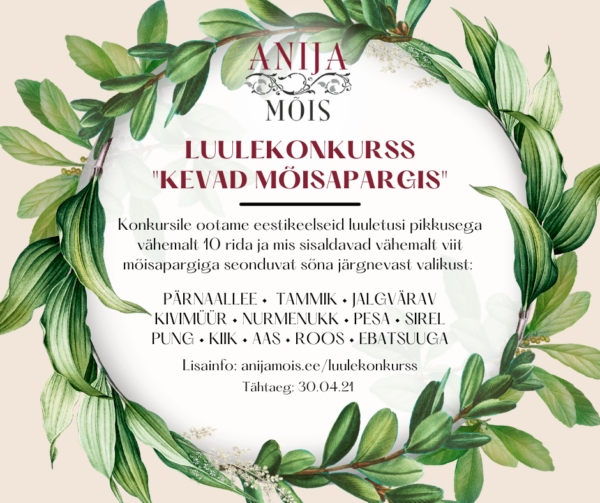 Anija mõis kuulutab välja luulekonkursi “Kevad mõisapargis”.