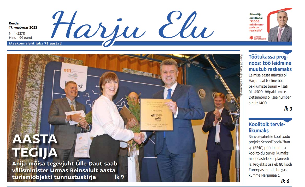 15.02 ilmunud väljaandes – „Oli see vast üllatus, meie jaoks oli väga suur tunnustus juba aasta turismiobjekti nominatsioon. Mul on väga hea meel, tundub, et teeme õiget asja, kui meid on märgatud. Aitäh, kes meid esitas,“ lausus Ülle Daut.
