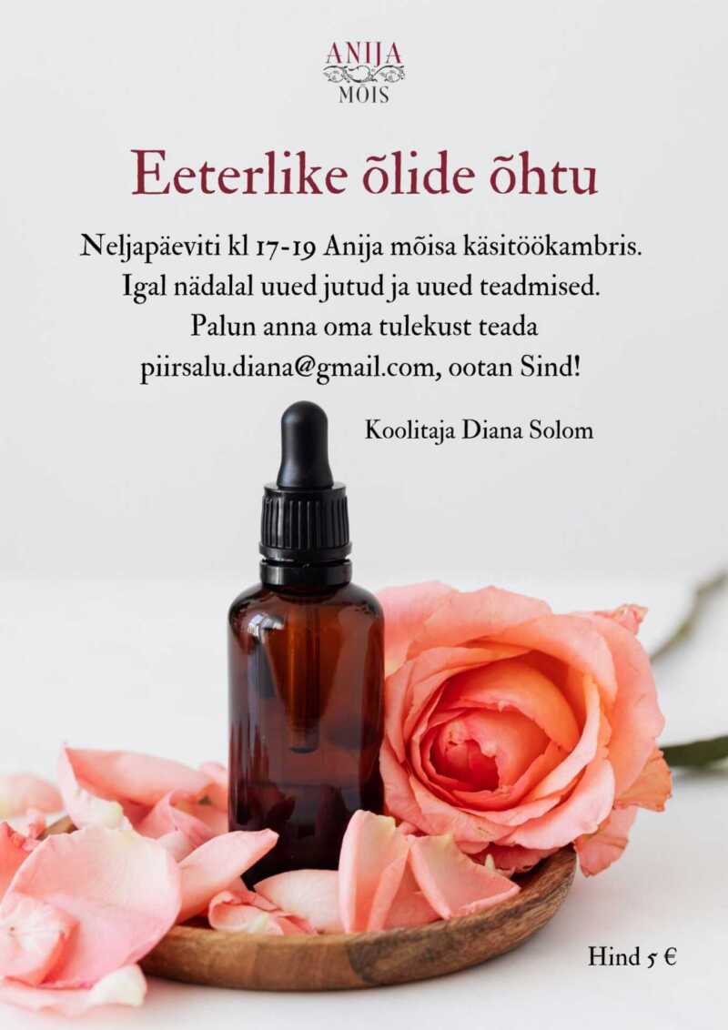 Õpitoas nuusutame ja proovime doTerra (lad. k. maaema kingitus) eetreid, mis on kõrgeima kvaliteediga taimedestillaadid maailma turul. Õpime eetrlike õlide kolme kasutusviisi. Räägime miks ja mida valida ning kõikvõimaikke kasulikke ja lihtsaid nippe.