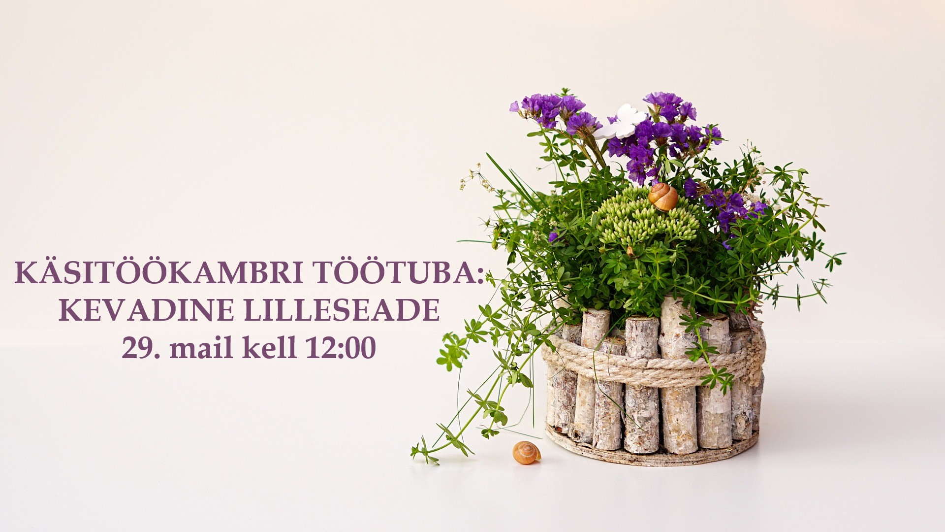 | 16€Tule ja tee endale terrassile, ukse ette, või miks mitte hoopis tuppa lauale värviline kevadine lilleseade. Kasutame klaasist purki või konservipurki, mille katame looduslike materjalidega- puukoore, okste, samblaga. Kohapeal on lilled olemas, aga lähme üheskoos mõisapargi aasale ning korjame meelepärast lisa. Iga osaleja saab lasta oma loomingul lennata ning kujundada täpselt selline lilleseade nagu soovib. Hiljem saab lilli vahetada ning kasutada oma tööd kasvõi külmadeni välja. Hind 16 EUR. Registreerimine: kribu999@gmail.com, 5127496. Juhendaja: Miina Antons