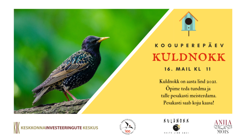 Sel koguperepäeval tuleb meile külla Eesti Ornitoloogiaühingust Margus Ots, kes tutvustab kuldnokka ja tema elu ja kombeid, annab näpunäiteid, kuidas teda looduses ära tunda ning õpetab pesakaste meisterdama. Meisterdajad saavad enda tehtud pesakasti endale. Materjal on meie poolt, kuid võimalusel võta haamer kaasa.