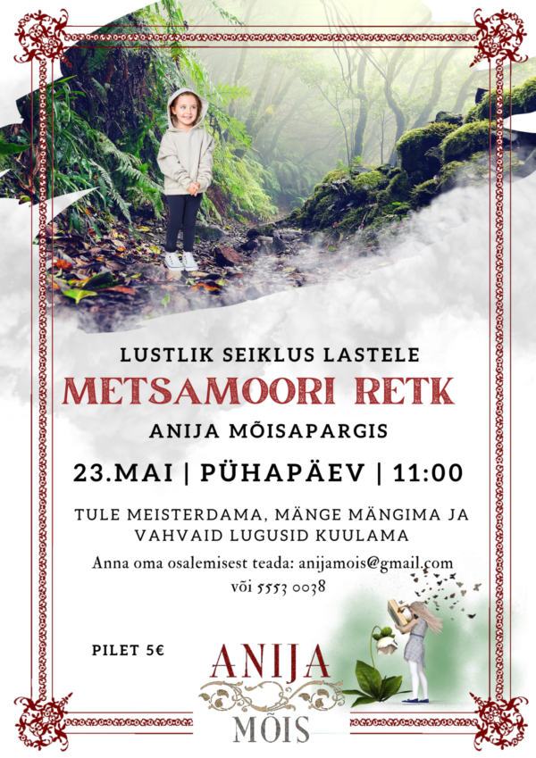 Pühapäeval, 23. mail kl 11 on kõik lapsed kutsutud lustlikule “Metsamoori retkele” läbi mõisapargi. Valmistame nõiajooki, mängime mänge ja räägime vahvaid lugusid.