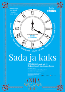 Teater VARIUS mängib oma uuslavastust “SADA JA KAKS”. Muusikalisel ajarännakut aastatel 1920-2020 läbime kõik kümnendid ESTONIA teatris ja Ringhäälingu stuudiotes. Lavastuses osalevad näitlejad, kes on publikule tuttavad etendustest “SADA JA ÜKS”. Laval on estoonlased RENÉ SOOM, PRIIT VOLMER, URMAS PÕLDMA ja ELE RAIK, PEETER KALJUMÄE. Klaveril HAIN HÕLPUS. Etenduse autor ja lavastaja on HEIDI SARAPUU.